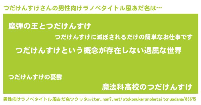 | 女子向けラノベタイトル風あだ名 | 『異世界で失敗しない100のつだけんすけ』 |