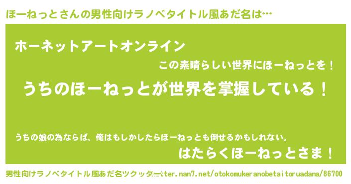 | 胡散臭い通販商品みたいなあだ名 | 『億万長者になれるブレスレット…その名も「ほーねっと」』 |
