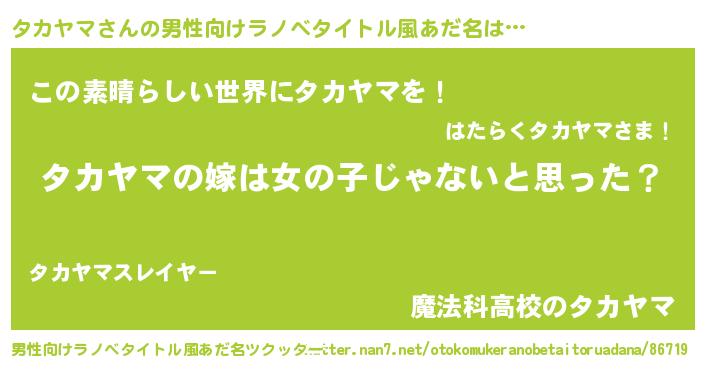| 女子向けラノベタイトル風あだ名 | 『タカヤマ様がみてる』 |
