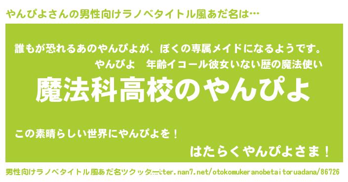 | 女子向けラノベタイトル風あだ名 | 『やんぴよアンティーク』 |