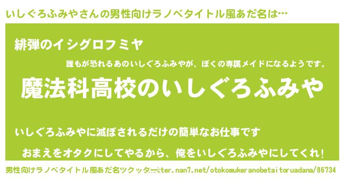 | 女子向けラノベタイトル風あだ名 | 『いしぐろふみやなんてお断りですっ。』 |