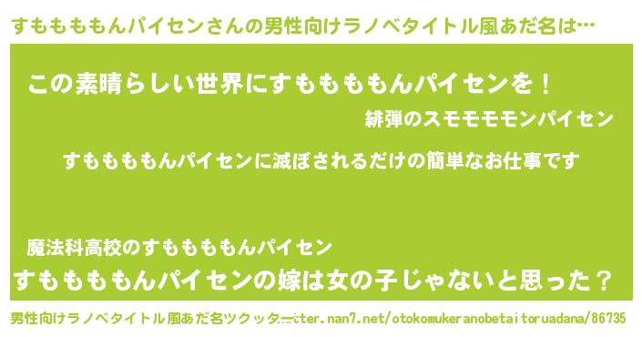 | 意味不明あだ名 | 『住所不定無職すももももんパイセン(62歳)』 |