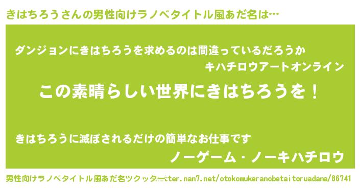 | 胡散臭い通販商品みたいなあだ名 | 『あなたにだけ特別に提供する限定10本のレアな日本酒…その名も「きはちろう」』 |