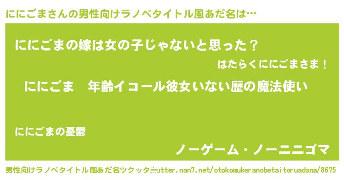 | ポケモン風あだ名 | 『ニニキング』『ヒニニゴマ』 |