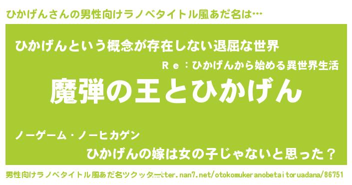 | 意味不明あだ名 | 『住所不定無職ひかげん(9歳)』 |