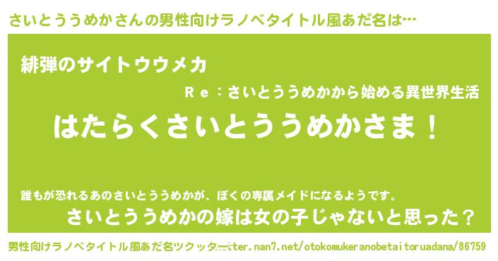| 意味不明あだ名 | 『とにかく怪しいさいとううめか』 |