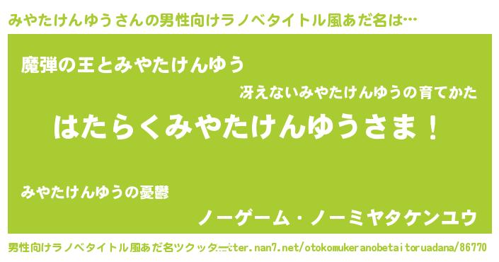 | ヒーロー風カッコイイあだ名 | 『仮面ミヤダー』『ネオミヤタケンユウ』 |