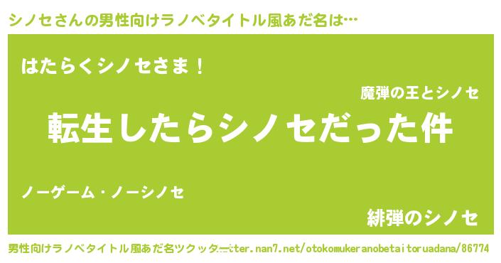 | 女子向けラノベタイトル風あだ名 | 『シノセの玉の輿計画!』 |