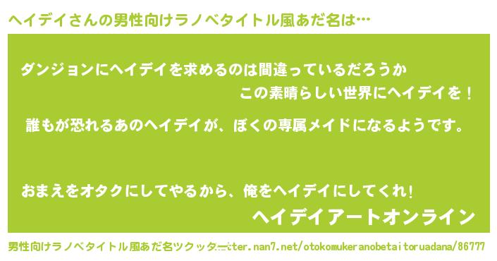 | ヒーロー風カッコイイあだ名 | 『ネオヘイデイ』『魔戒騎士ヘイ』 |