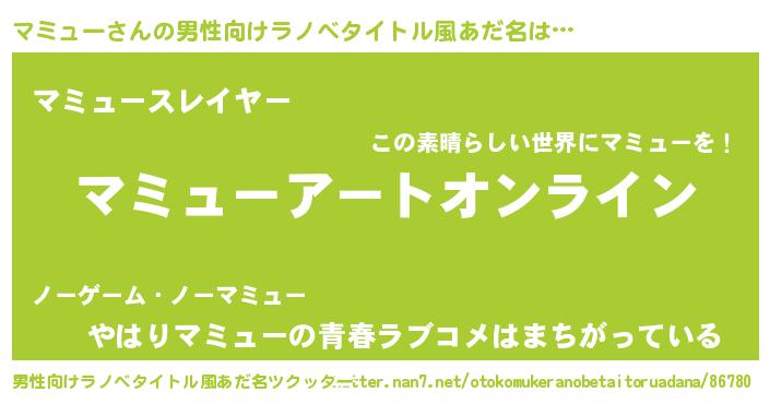 | 女子向けラノベタイトル風あだ名 | 『誰かこのマミューを説明してください! ~契約から始まるウェディング~』 |
