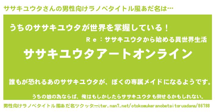 | 女子向けラノベタイトル風あだ名 | 『ササキユウタ姫と円卓の騎士』 |