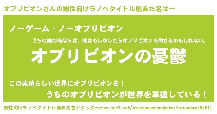 | 女子向けラノベタイトル風あだ名 | 『(仮)オブリビオンのやんごとなき事情』 |