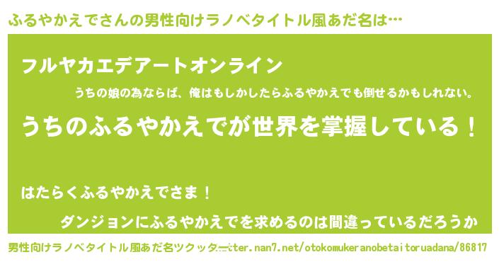 | 胡散臭い通販商品みたいなあだ名 | 『億万長者になれる水晶球…その名も「ふるやかえで」』 |
