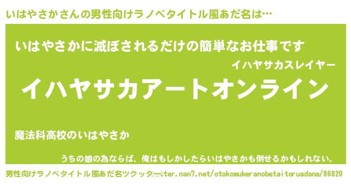 | 女子向けラノベタイトル風あだ名 | 『いはやさか姫と円卓の騎士』 |