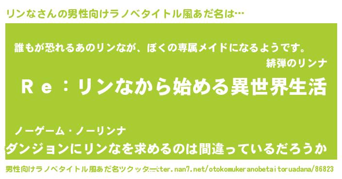 | 女子向けラノベタイトル風あだ名 | 『闇のリンな』『リンなの卵を拾いまして』 |