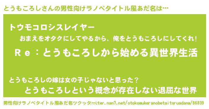 | ヘコむあだ名 | 『とうもころし(小並感)』『とうっぺ』 |