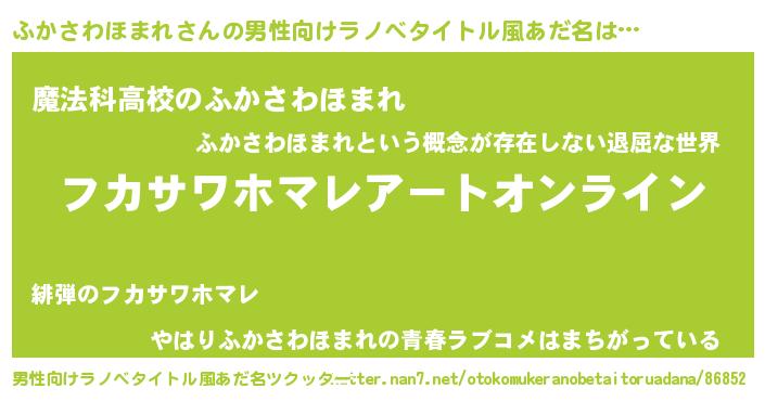 | 胡散臭い通販商品みたいなあだ名 | 『億万長者になれる霊験あらたかなお札…その名も「ふかさわほまれ」』 |