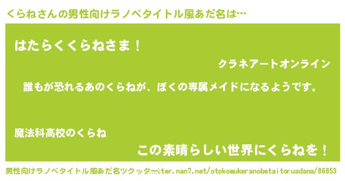 | 女子向けラノベタイトル風あだ名 | 『異世界でカフェくらねを開店しました。』 |
