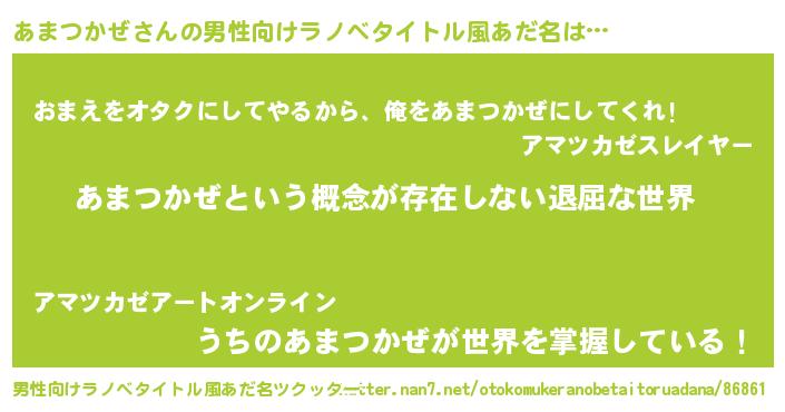 | 胡散臭い通販商品みたいなあだ名 | 『絶対に幸福をもたらす健康食品…その名も「あまつかぜ」』 |