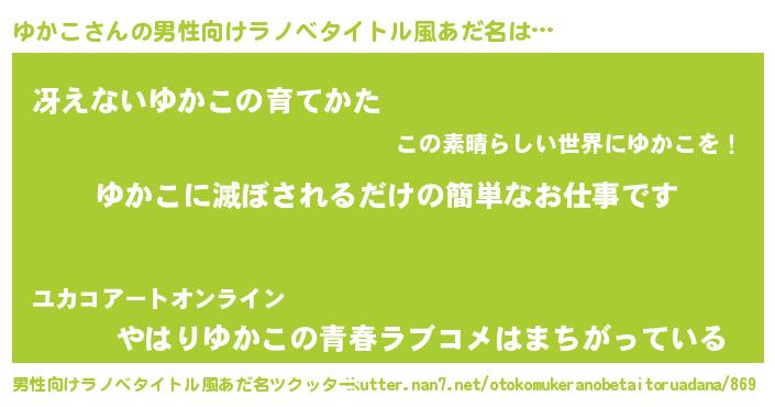 | ファンタジー風あだ名 | 『カークユカラー』『エターナルユカコー』 |