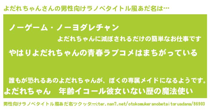 | ファンタジー風あだ名 | 『エターナルヨダレチャンー』 |