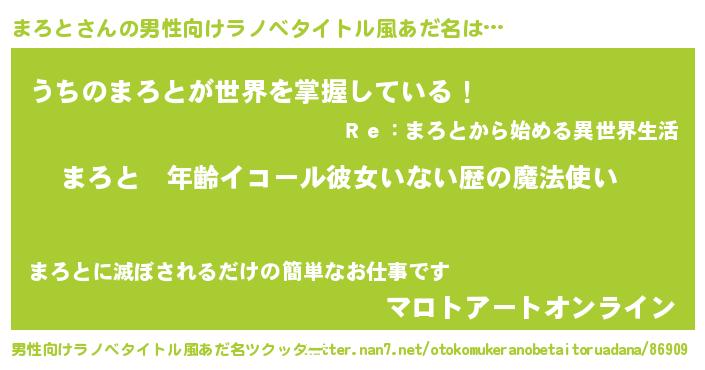| 女子向けラノベタイトル風あだ名 | 『まろとの玉の輿計画!』 |