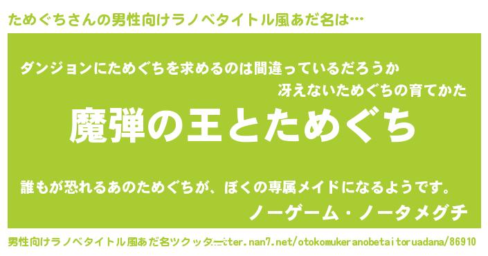 | 意味不明あだ名 | 『住所不定無職ためぐち(89歳)』 |
