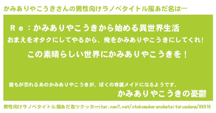 | 意味不明あだ名 | 『住所不定無職かみありやこうき(39歳)』 |