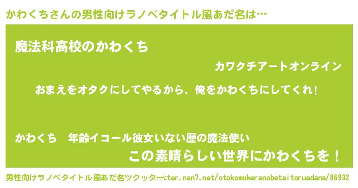 | 女子向けラノベタイトル風あだ名 | 『かわくち夫妻のなれそめ』 |