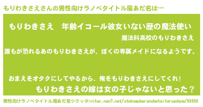 | 女子向けラノベタイトル風あだ名 | 『もりわきさえの契約王妃』 |