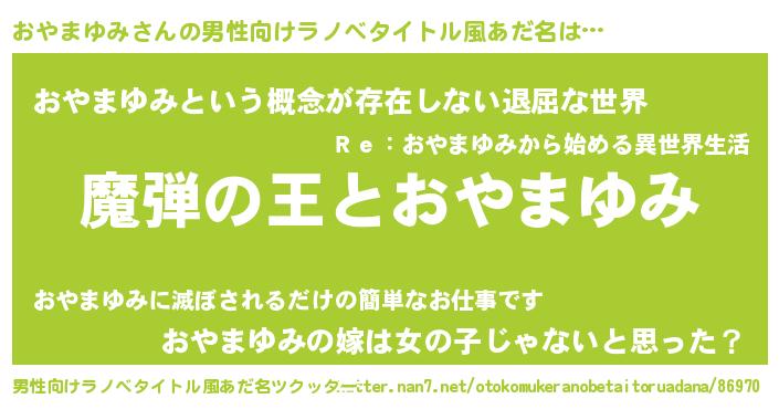 | 意味不明あだ名 | 『住所不定無職おやまゆみ(7歳)』 |