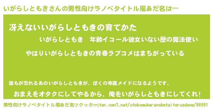 | 女子向けラノベタイトル風あだ名 | 『いがらしともきの雑貨屋さん』 |