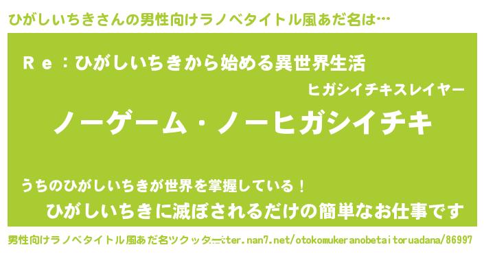| 女子向けラノベタイトル風あだ名 | 『死神ひがしいちきの再婚』 |