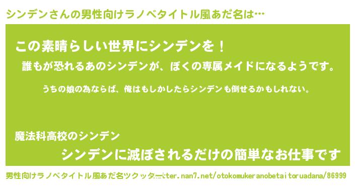 | ヒーロー風カッコイイあだ名 | 『ウルトラシンデンマン』『仮面シンダー』 |
