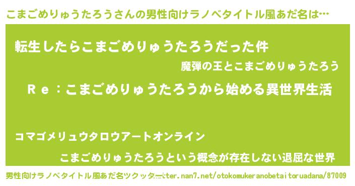 | 女子向けラノベタイトル風あだ名 | 『闇のこまごめりゅうたろう』 |