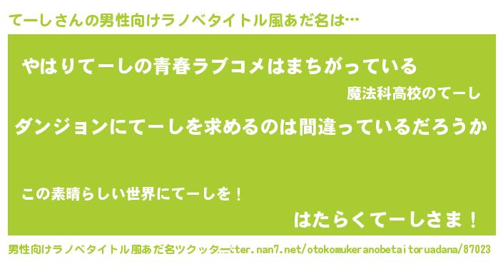 | 胡散臭い通販商品みたいなあだ名 | 『信頼と実績のネックレス…その名も「てーし」』 |