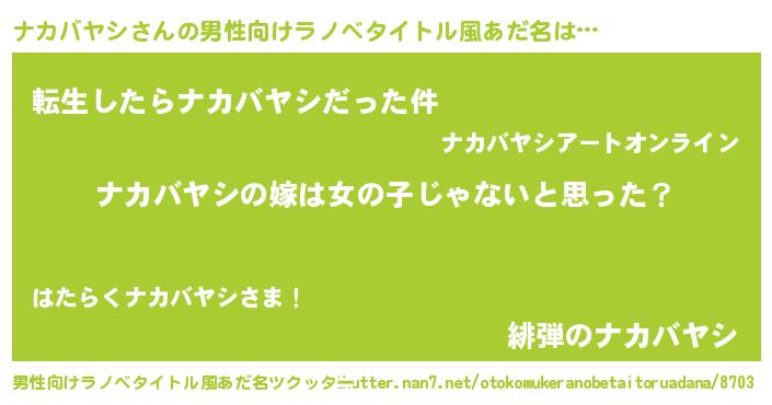 | 女子向けラノベタイトル風あだ名 | 『ナカバヤシ様がみてる』 |