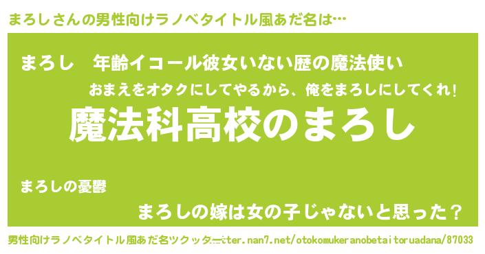 まろしさんの男性向けラノベタイトル風あだ名をツクッター!