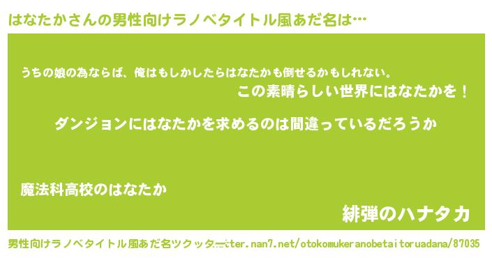 | ヒーロー風カッコイイあだ名 | 『黄金騎士ハナ』『ウルトラはなたかマン』 |