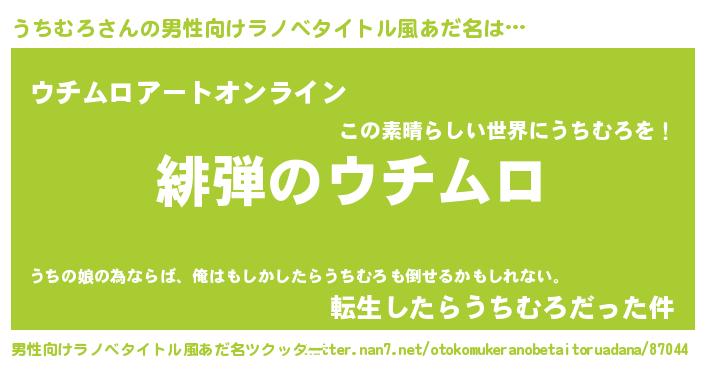 | 女子向けラノベタイトル風あだ名 | 『シンデレラうちむろ家の靴箱館』 |