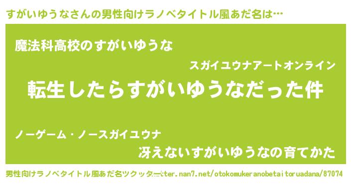 | 女子向けラノベタイトル風あだ名 | 『すがいゆうなの玉の輿計画!』 |