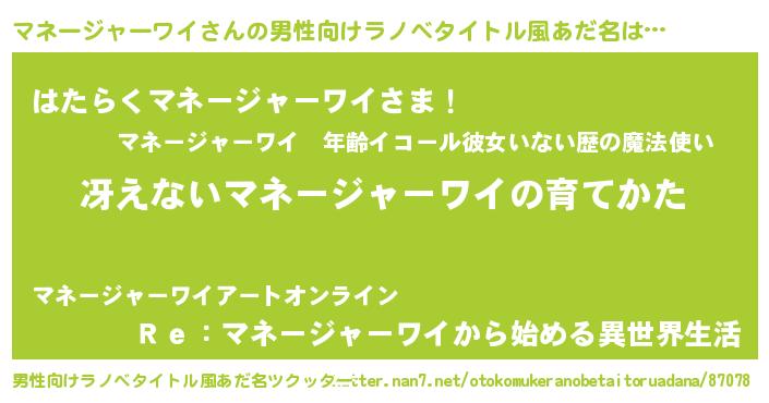 | ヒーロー風カッコイイあだ名 | 『サイバー戦士マネージャーワイ』 |