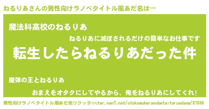 | 料理風あだ名 | 『ねるりあごはん』 |