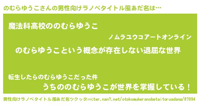 | ヘコむあだ名 | 『のむらゆうこ(笑)』『のむっふぃ~』 |