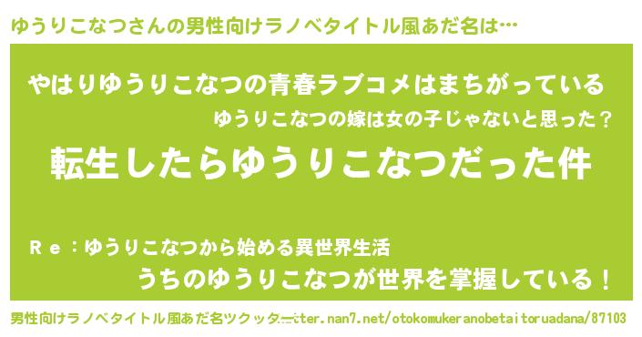 | 肩書あだ名 | 『ゆうりこなつ中佐』『ゆうりこなつ船長』 |