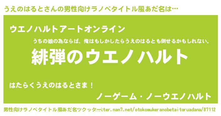 | 胡散臭い通販商品みたいなあだ名 | 『必ず成功するブレスレット…その名も「うえのはると」』 |