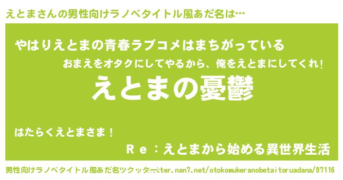 | 胡散臭い通販商品みたいなあだ名 | 『必ず成功する水晶球…その名も「えとま」』 |