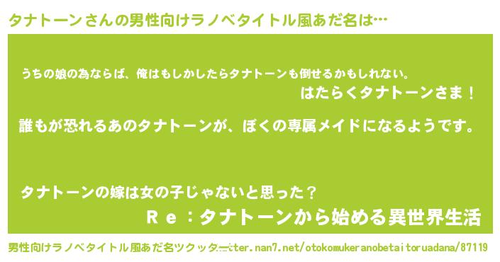 | ファンタジー風あだ名 | 『タナディッシュ』『ゼタナトゥ』 |