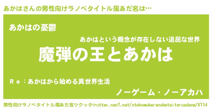 | 意味不明あだ名 | 『住所不定無職あかは(1歳)』『自称あかは』 |