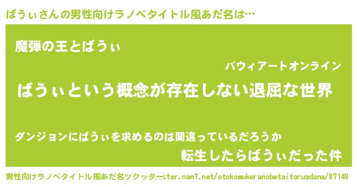 ばうぃさんの男性向けラノベタイトル風あだ名をツクッター!